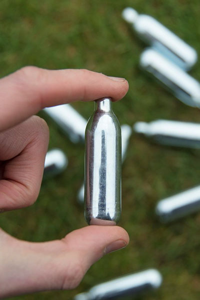 Meestal wordt een lachgaspatroon eerst leeggelaten in een ballon. Al dan niet met een ‘cracker’, een apparaatje dat een gat in het patroon prikt. Het lachgas wordt dan langzaam in- en uitgeademd via de ballon.